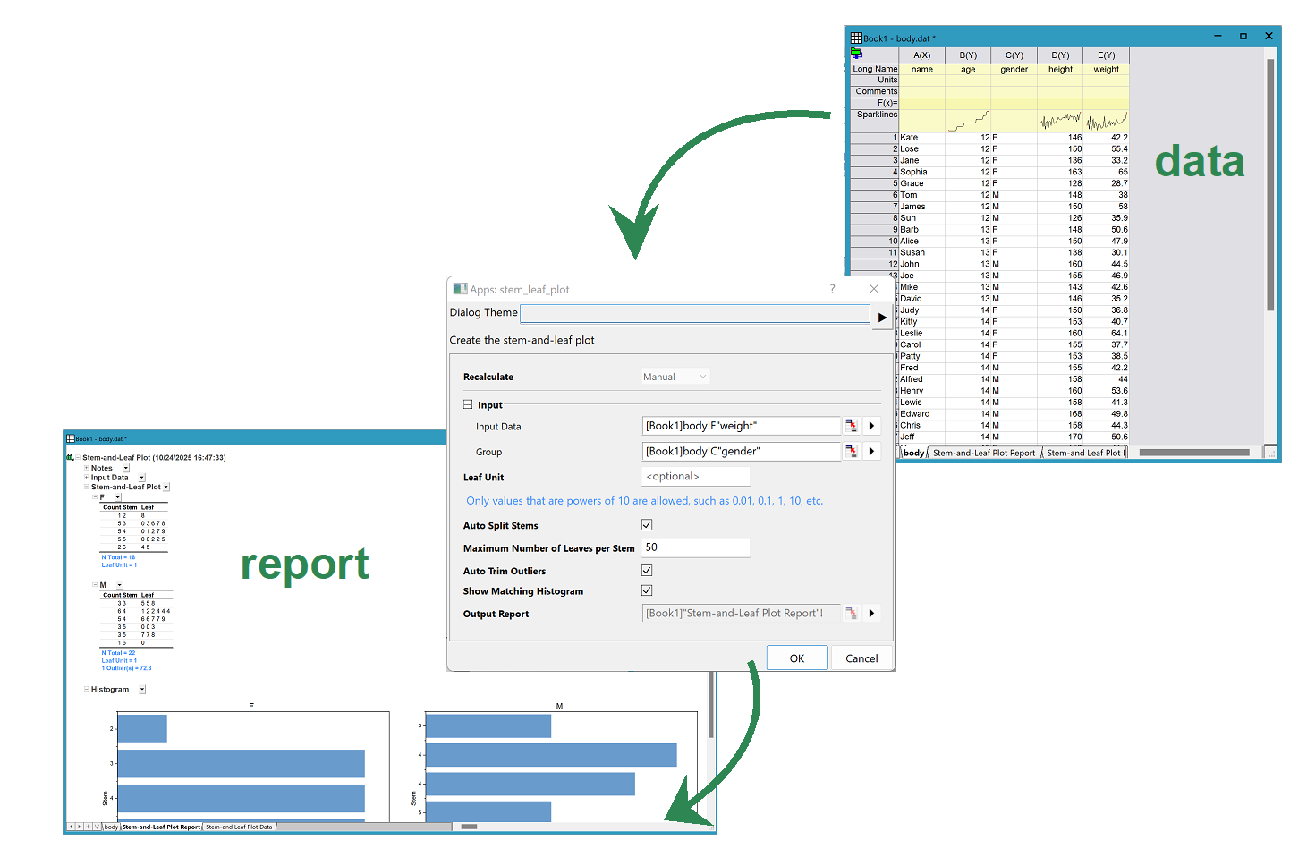 - Output Report: Specify the output location for the stem-and-leaf plot.