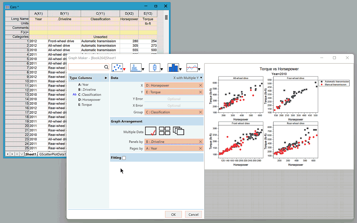 Simply drag and drop columns into the corresponding areas, and the preview updates instantly as you assign or modify data. Multiple datasets and grouping are supported for statistical graphs.