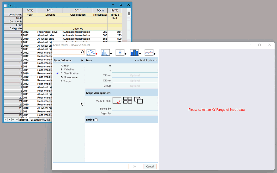 When you open the Graph Maker dialog, you’ll find several general templates that help you quickly create graphs from your data. Begin by selecting the graph type you want.
