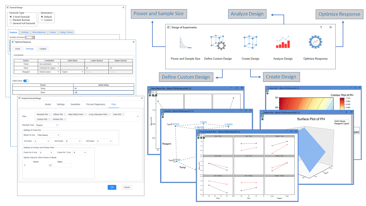 - Various types of designed experiments to help you create a design.